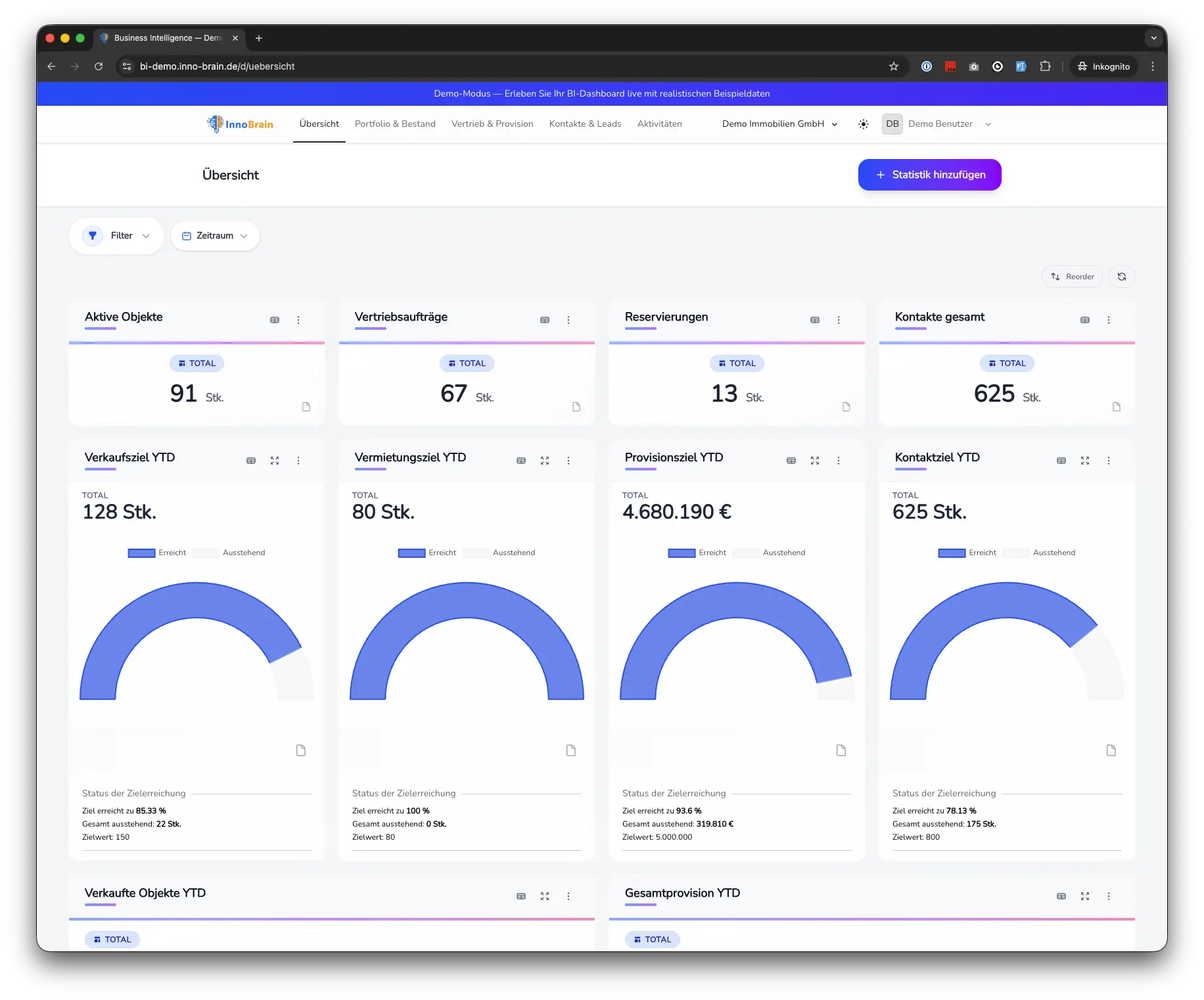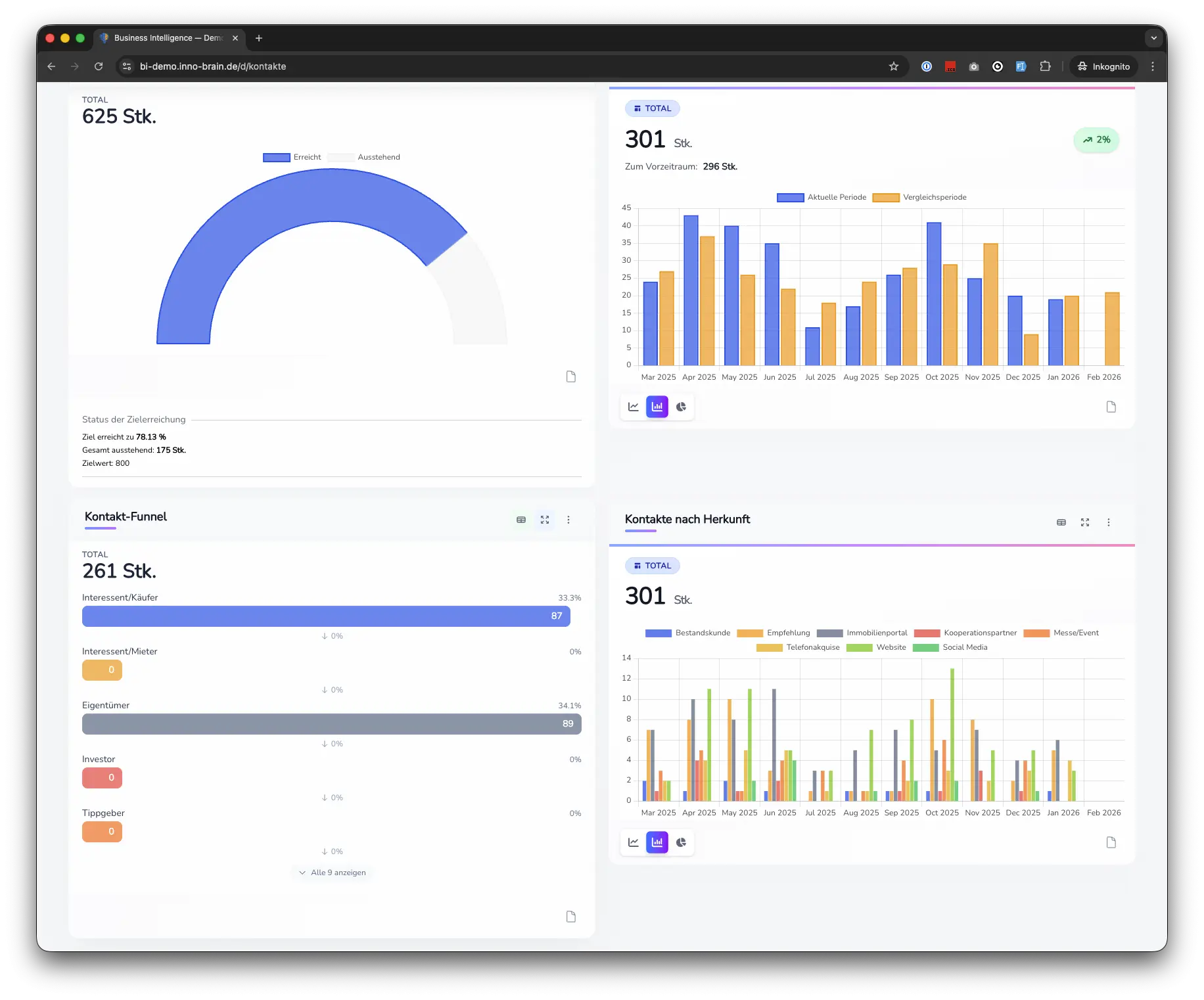 Ja, Daten-Sync ist die ideale Grundlage für unser Business-Intelligence-Tool InnoBI. Wenn Sie Daten-Sync bereits nutzen, kann InnoBI direkt auf Ihr Data Warehouse zugreifen. Sie profitieren von einem Kombi-Vorteil und erhalten aussagekräftige Dashboards auf Basis Ihrer synchronisierten Daten.